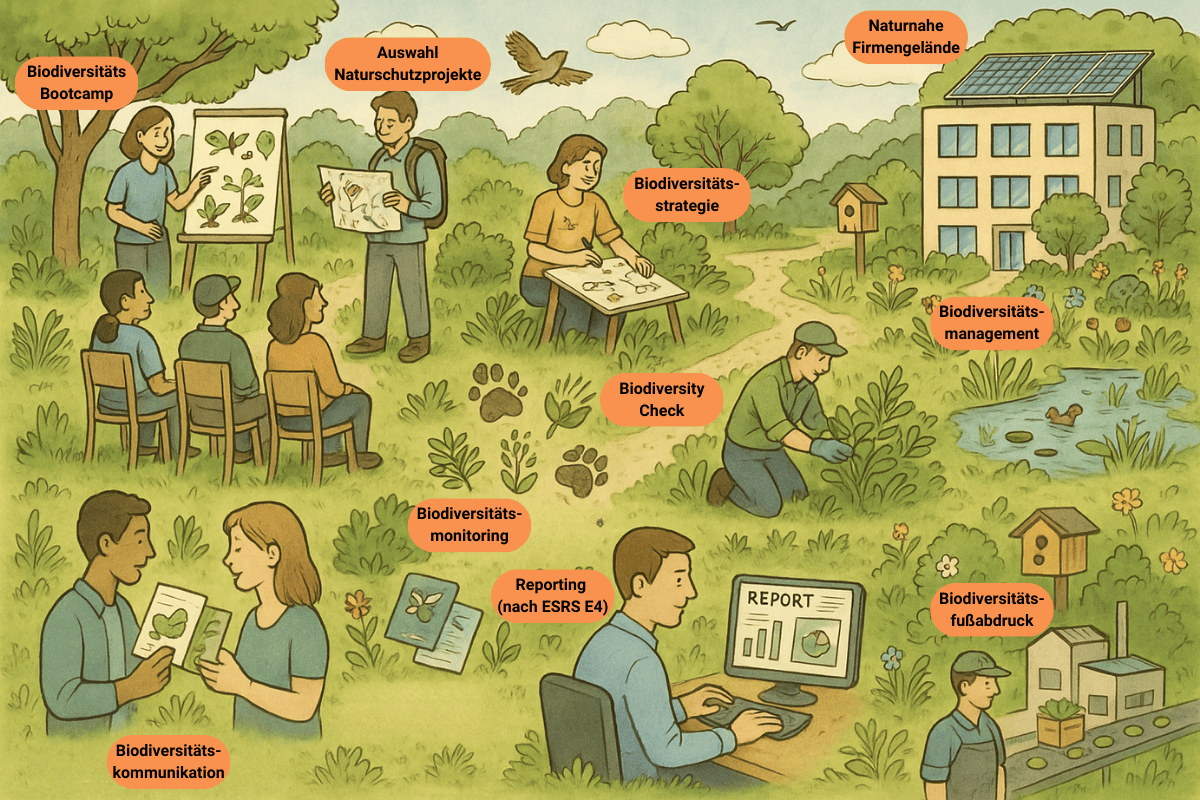 Fördere die Biodiversität in Deinem Unternehmen mit gezielter Biodiversitätsberatung von Experten. Hier findest Du einen Überblick über die wichtigsten Biodiversitätsberatungen.